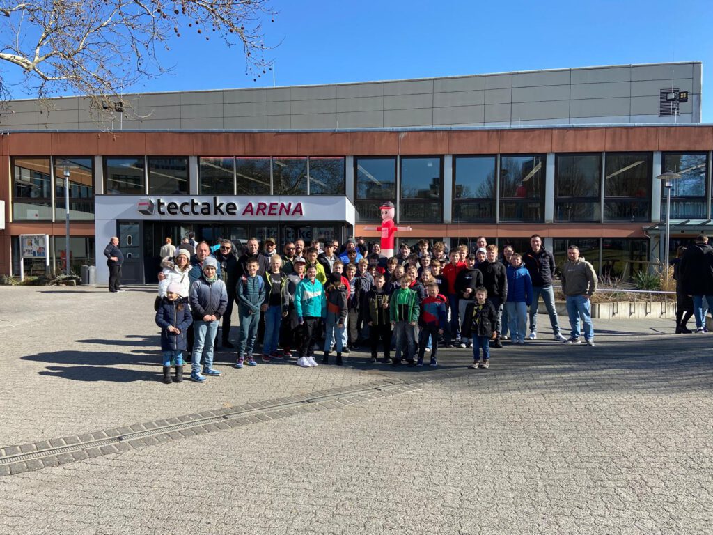 Kinder, Jugendliche und Erwachsene angemeldet, um einmal ein Basketballspiel live zu sehen.